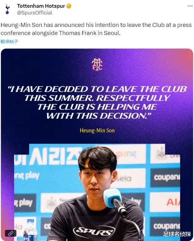 chính thức: Son Heung-Min tuyên bố tại một cuộc họp báo rằng ông đã quyết định rời Tottenham vào mùa hè này.