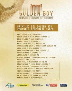 "Turin Sports News" đã công bố danh sách 25 ứng cử viên cho Giải thưởng Cậu bé vàng Châu Âu năm 2025. Có 20 người trong danh sách ứng cử viên thường xuyên và 5 người khác được đưa vào danh sách rút gọn là "quân bài hoang dã". Cơ chế thẻ đại diện đã được giới thiệu trong những năm gần đây để tránh bỏ sót những ngôi sao mới tiềm năng, vì vậy một "danh sách bổ sung" đặc biệt đã được thiết lập và anh trai của Bellingham là Job đã lọt vào danh sách rút gọn.